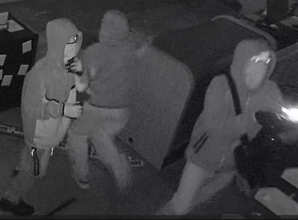 Surveillance cameras inside Strykers Shooting World captured images, including this one, of the suspects who broke into and burglarized the store early Saturday morning.